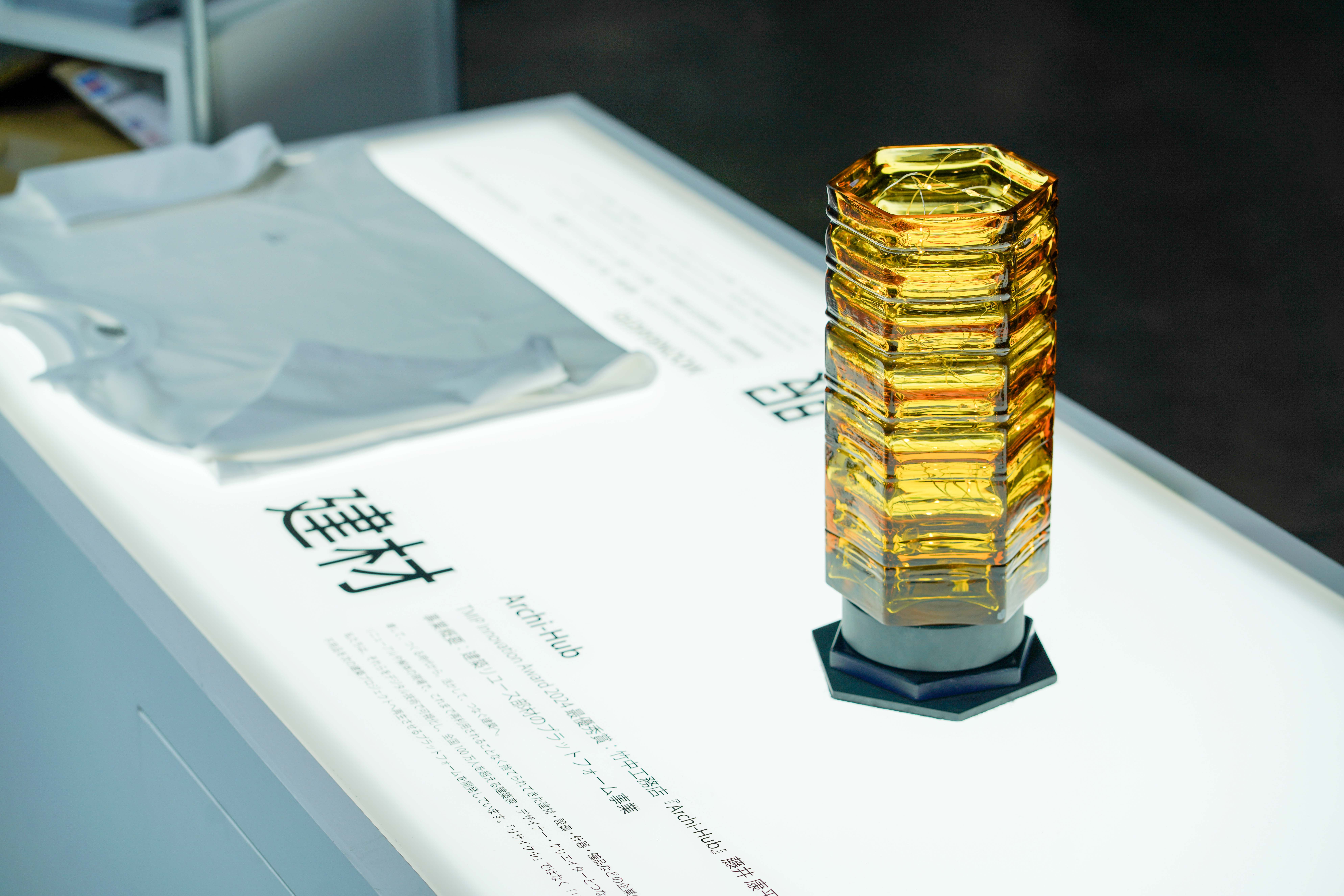 3つ目は、竹中工務店による企業の不用品を建築プロジェクトにマッチングするサーキュラーエコノミーを体現する事業「Archi-Hub」。展示では、結婚式場のシャンデリアを再利用して製作されたテーブルランプが来場者の目を引きました。