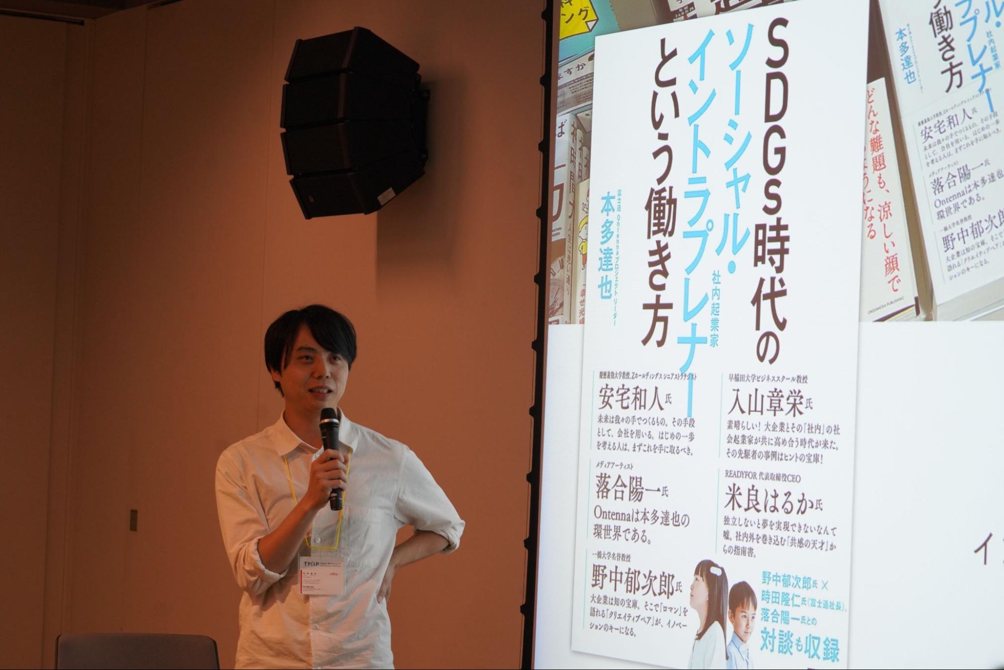 登壇者のおふたりの自己紹介が終わった後は、「ソーシャルイントラプレナー」という働き方をテーマに話が進みました。『SDGs時代のソーシャル・イントラプレナーという働き方』という著書を書かれ、次世代型のサステナビリティ人材育成プログラム「ソーシャル・イントラプレナー・スクール」も開校している本多さんは、この新しい働き方の意義をこう語ります。