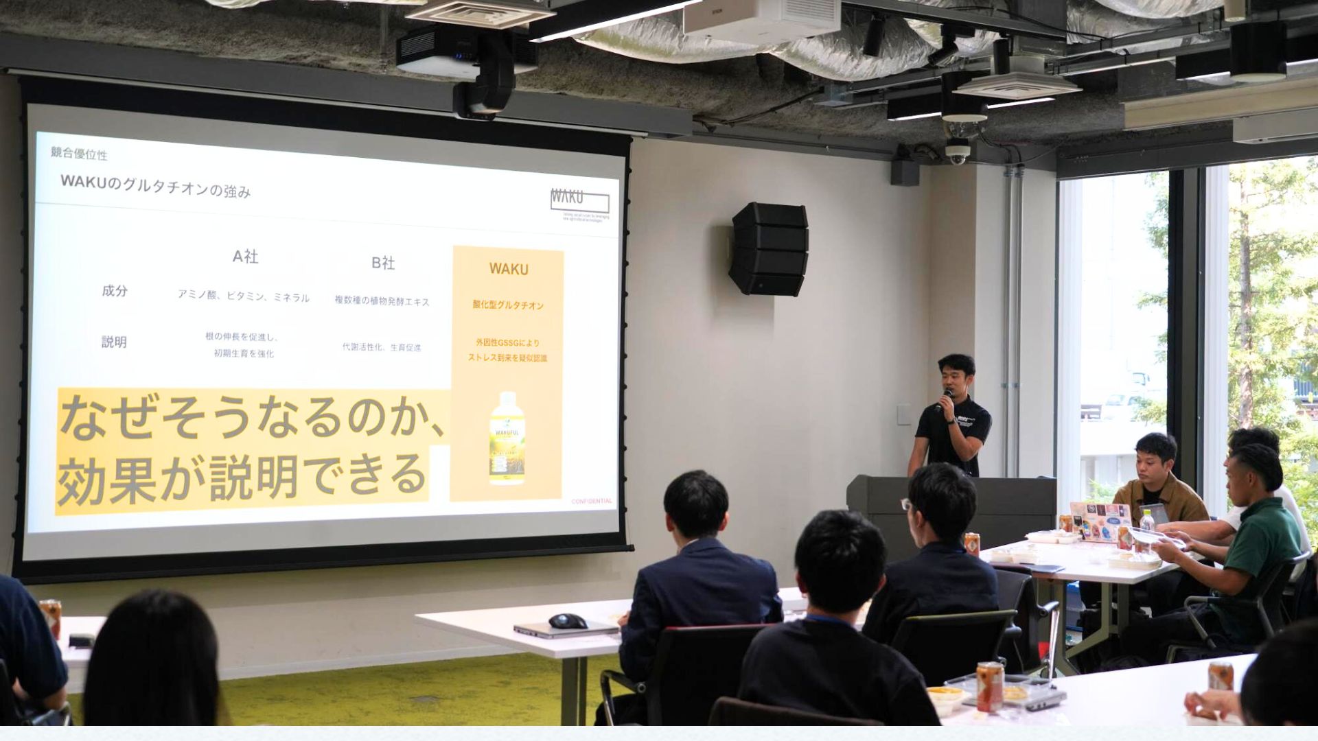 一方、WAKUの資材はグルタチオンという単一の有効成分に特化しているため、生長促進のメカニズムが明確であり、生産者の方々にとって「再現性のある資材」であることが強みになっています。