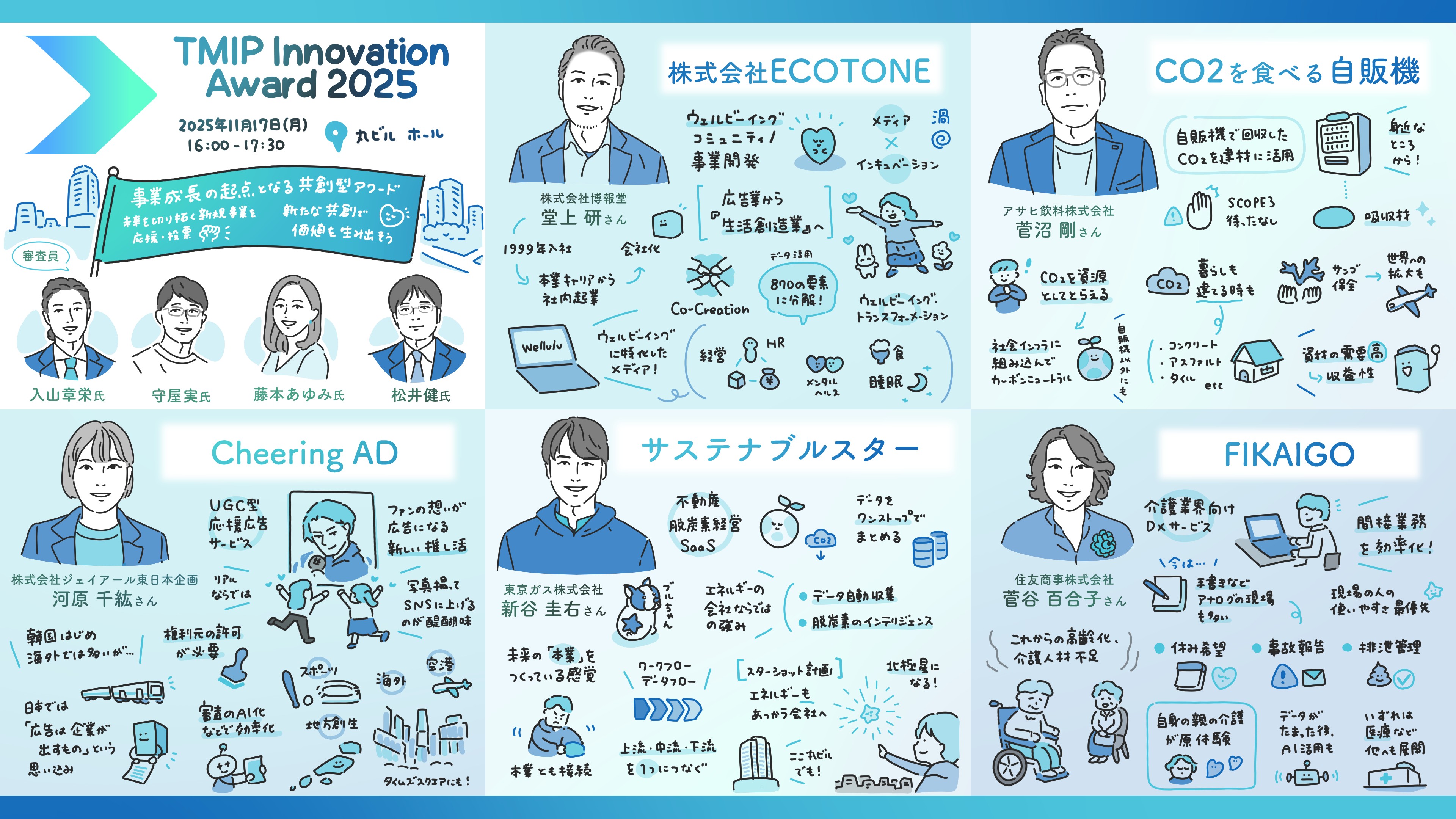 本年も多様で意欲あふれる多くのエントリーをいただきました。TMIP Innovation Awardの開催を通じて、挑戦が生み出すつながりと広がりを改めて実感するとともに、イントレプレナーの一歩が組織を動かす力を感じています。TMIPでは受賞事業のさらなる成長に伴走してまいります。