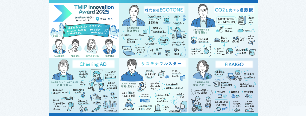 大淵:新規事業は前例がない中で進めなければならないし、相談できる人も少なく孤独になりがちです。ですが、社内に閉じてしまうとスピード感も発想も限られてしまうので、オープンな場に出ていくことが何よりも大切です。本アワードのように発信できる場に参加することで、知見のシェアや成功の追体験などができます。ぜひ、来年度のTMIP Innovation Awardへのご参加をお待ちしています。